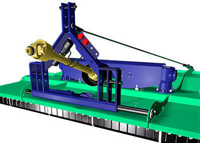 Attelage flottant en chapes et déportable hydrauliquement (sauf 1,70 m) pour un travail sur tous types de tracteurs et de terrains.